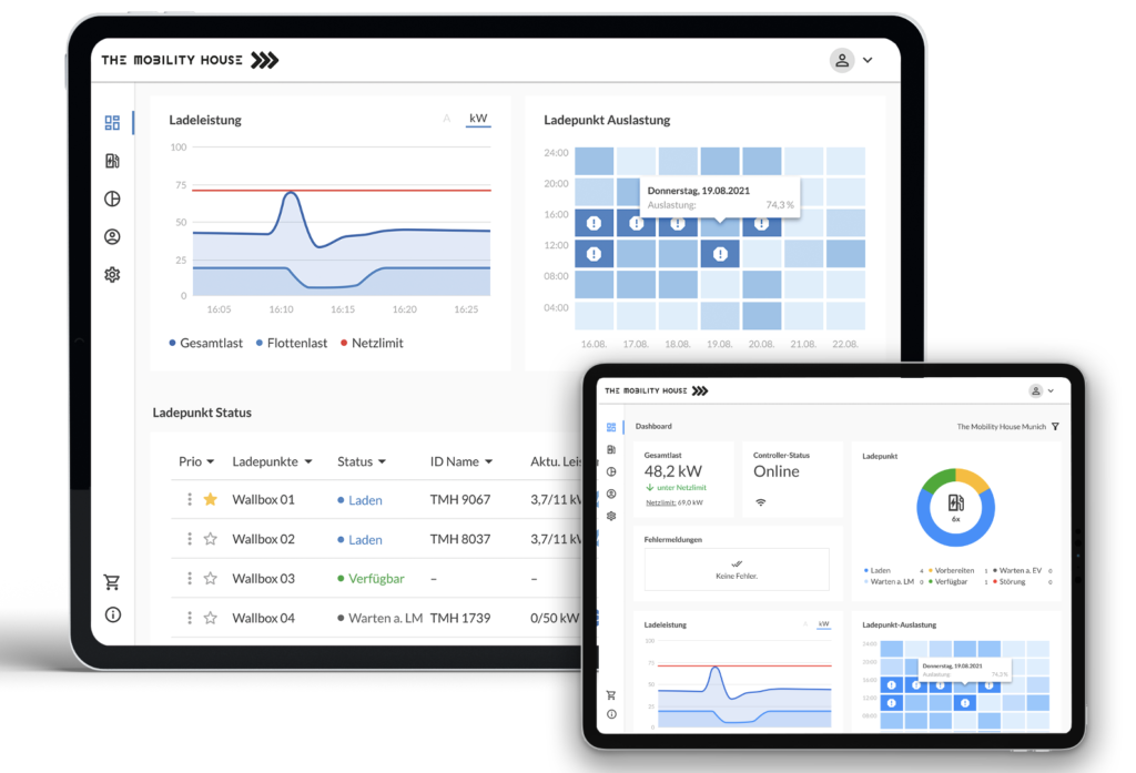 Ein Lade- und Energiemanagementsystem übermittelt via Internet zudem die notwendigen Daten zur Visualisierung und Überwachung der Ladevorgänge und Ladestationen in Echtzeit an ein Web-Portal, um einen möglichst transparenten Ladebetrieb sicherzustellen.