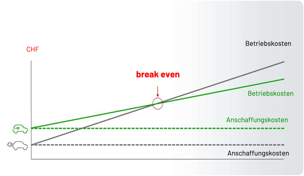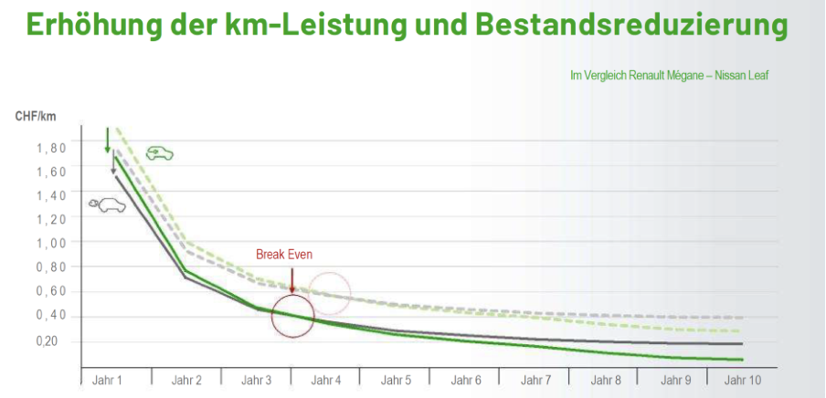 Mit Senkung der Investitionskosten für neue E-Fahrzeuge der Break Even früher erreicht.