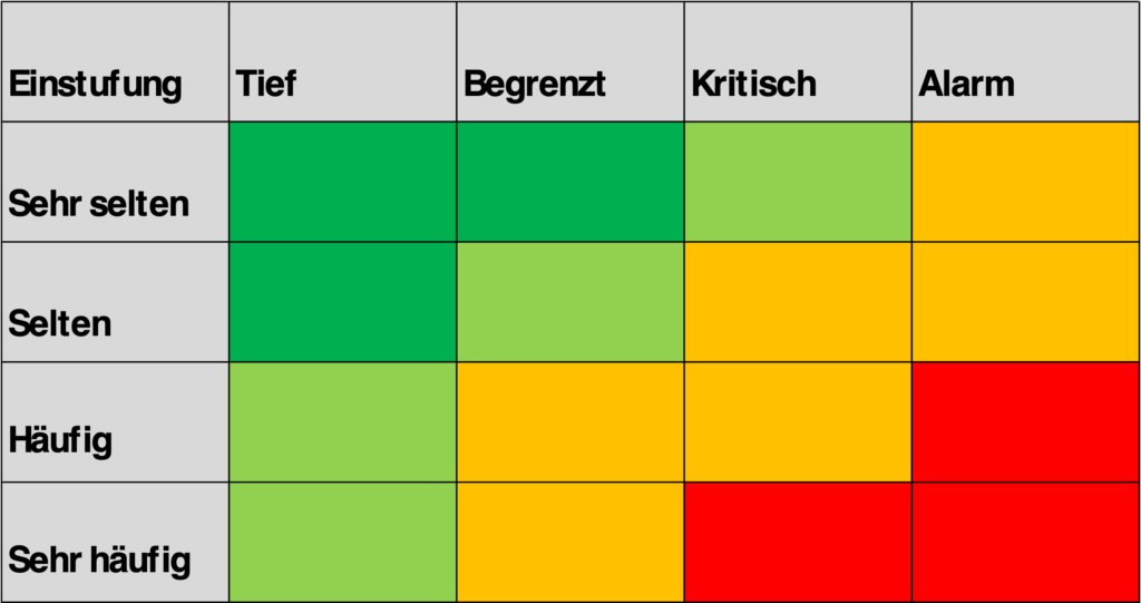 Eine genaue Beobachtung sollte für die Risiken erfolgen, für die gemeinsam eine hohe Eintrittswahrscheinlichkeit und hohe Auswirkungen attestiert wird.