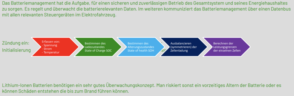 Das Sicherheitsmanagement wird benötigt um gefährliche Betriebszustände wie Tiefenentladung, Überladung, Überstrom,