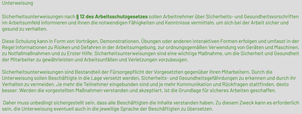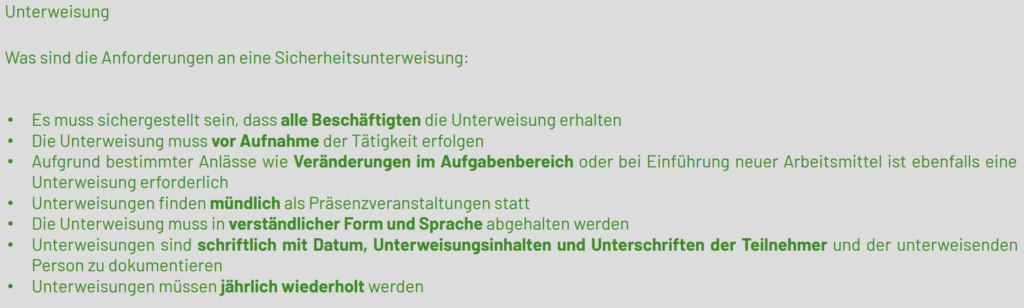 Maßnahmen des Arbeitsschutzes erforderlich sind.